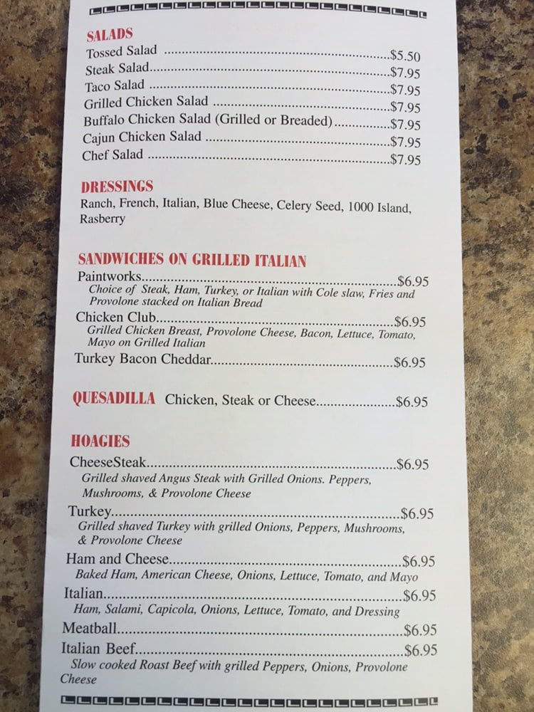 Paint Room Pizzeria & Sandwich Shop, located at 115 Mill Run Rd Normalville, PA 15469, offers a delightful menu of pizza and sandwiches. Known for their excellent service, this spot is perfect for families as they offer takeout, take reservations, accept credit cards, and cater to kids. Customers rave about the quality of food and service, with reviews praising their delicious pizza, hot wings, and Stromboli. Whether you're coming in after a day of snowboarding or simply looking for a tasty meal, Paint Room Pizzeria is the place to be. The clean and well-maintained space, along with friendly employees, ensure a pleasant dining experience. Don't miss out on their top-notch wings and meat lovers pizza that leave customers coming back for more.